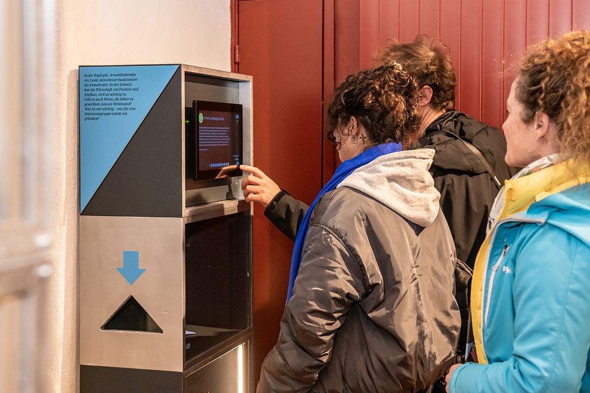 Verschiedene Stationen im Museum führen zu brisanten Fragen in der aktuellen Demokratiedebatte. Etwa zur zunehmende Gewichtung von Natur- und Umweltschutz und zur Einführung von Rechten für Tier und Umwelt. Stehen diese neuen Rechte unseren persönlichen Rechten, unserem eigenen Glück entgegen?